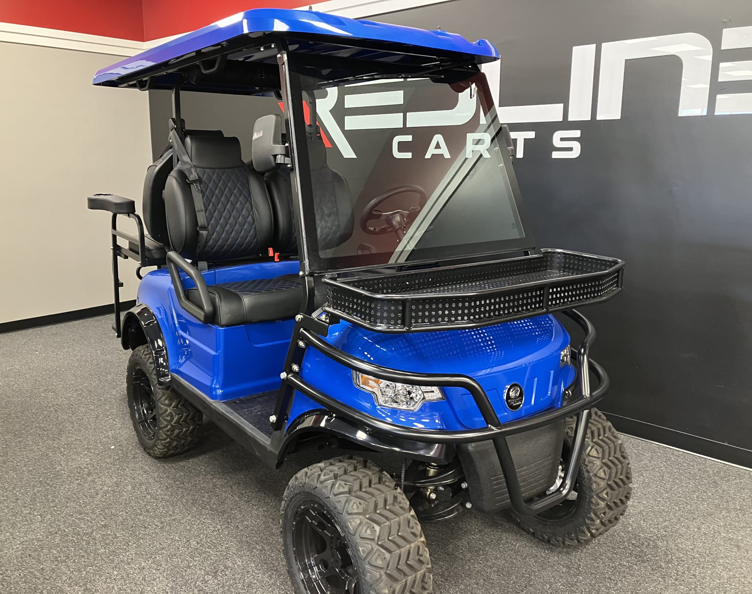 The lifted EPIC Cart E40L four seater golf cart is loaded with premium features for both residential and commercial needs.